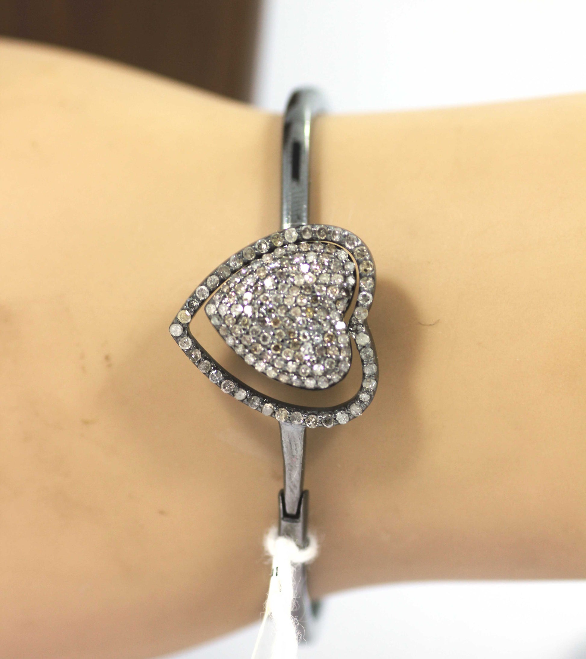 Heart Diamond Silver Bracelet .925 Oxidized Sterling Silver Diamond Bracelet, Genuine handmade pave diamond Bracelet.