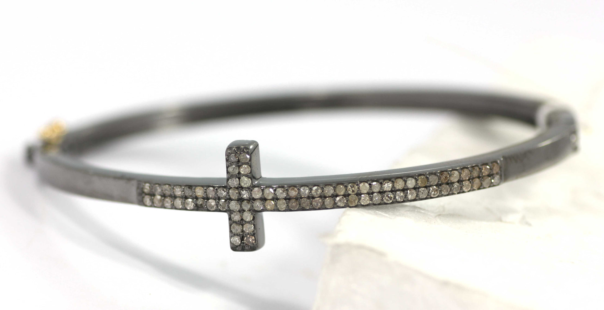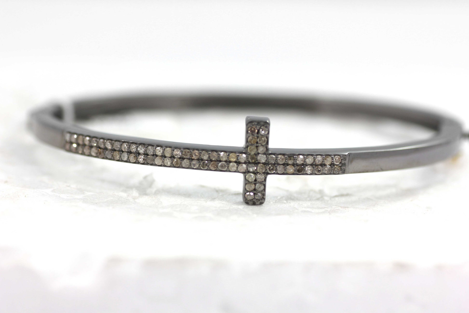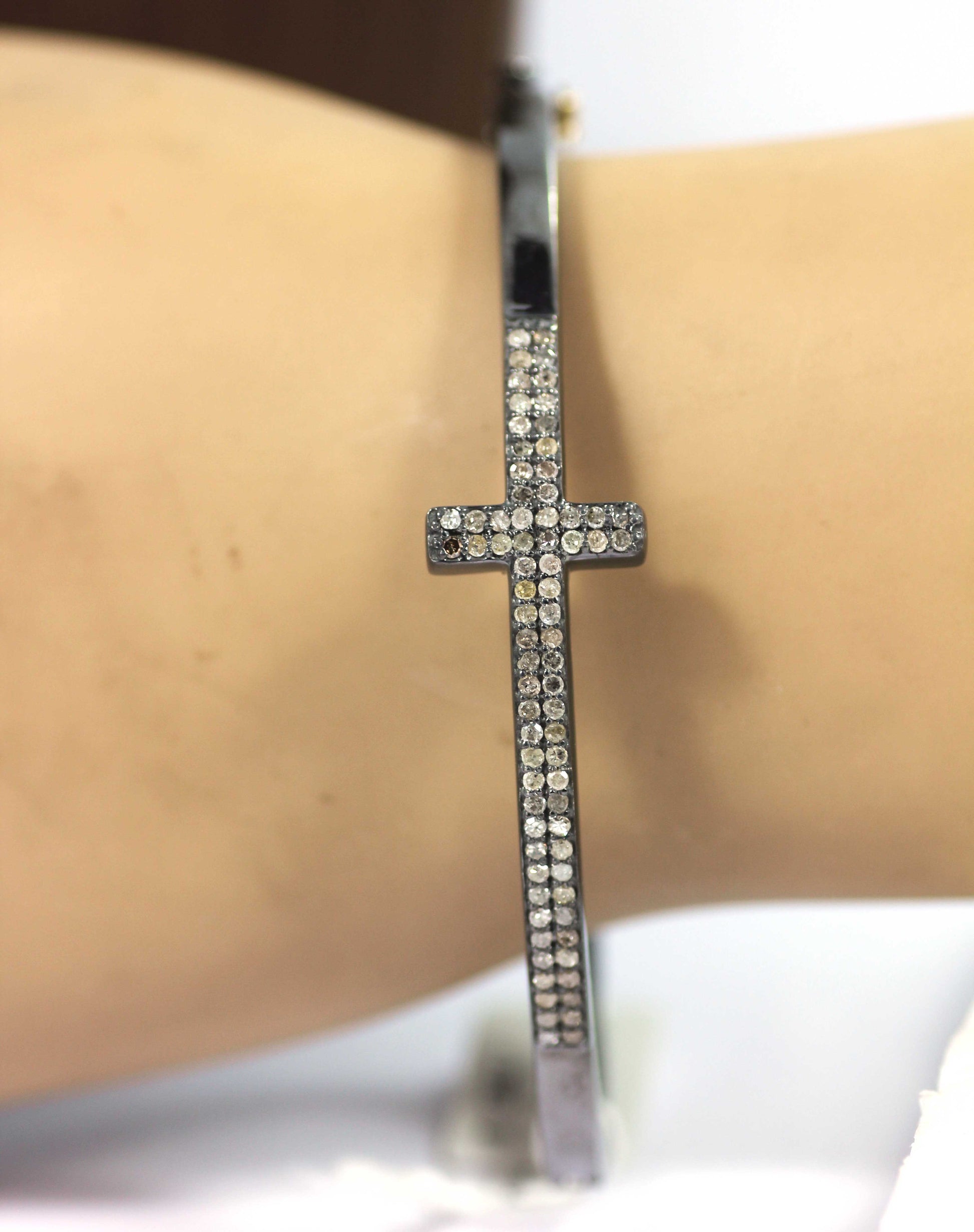 Cross Diamond Silver Bracelet .925 Oxidized Sterling Silver Diamond Bracelet, Genuine handmade pave diamond Bracelet.