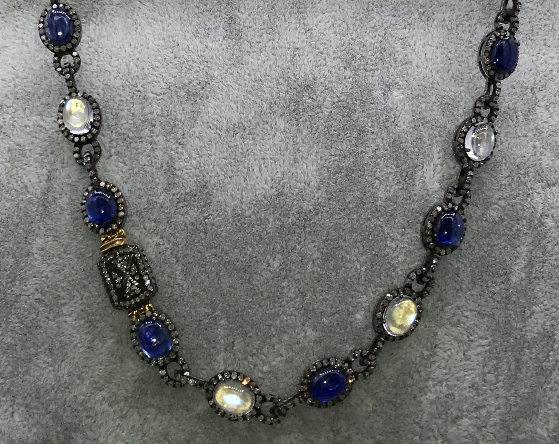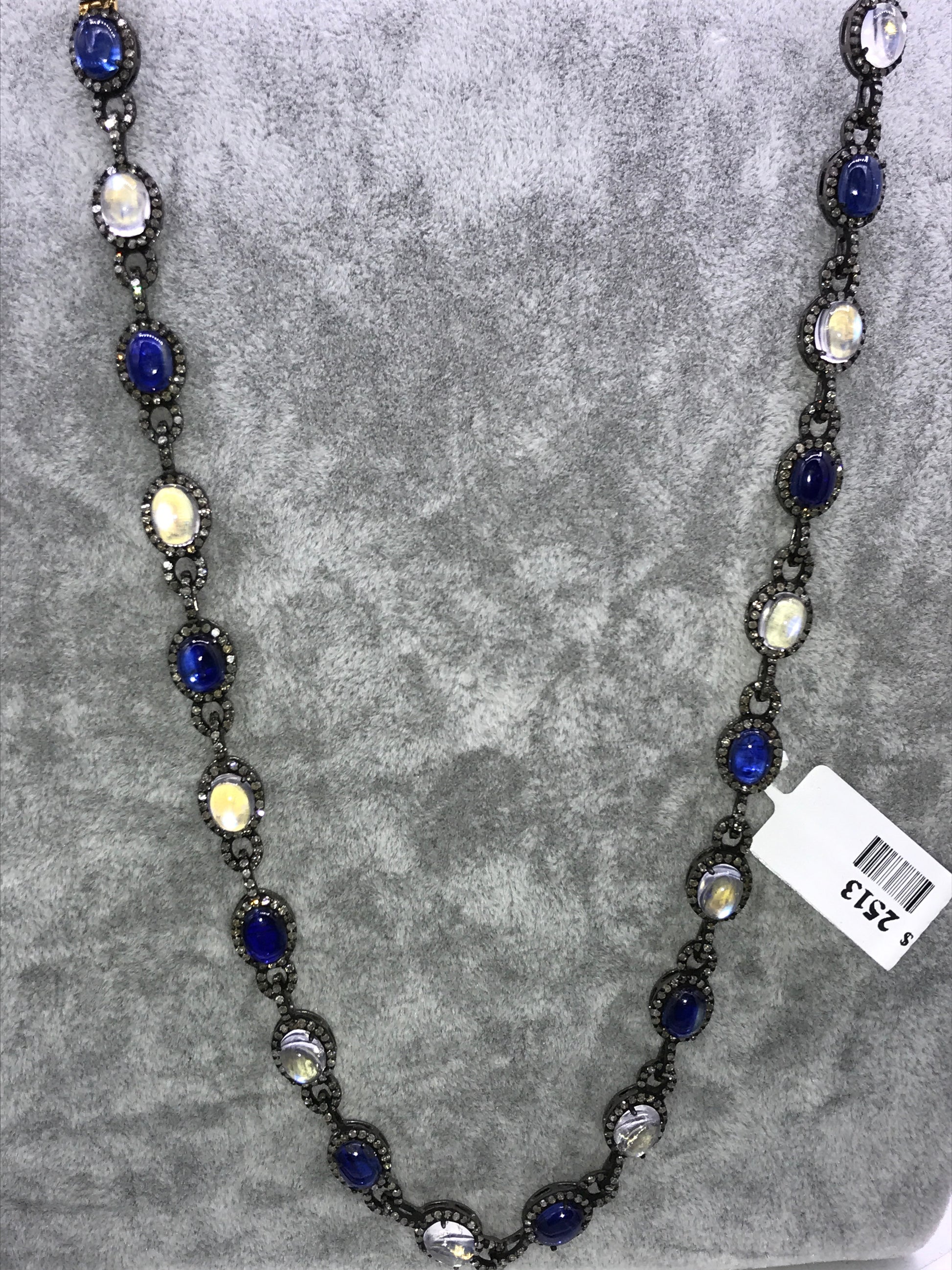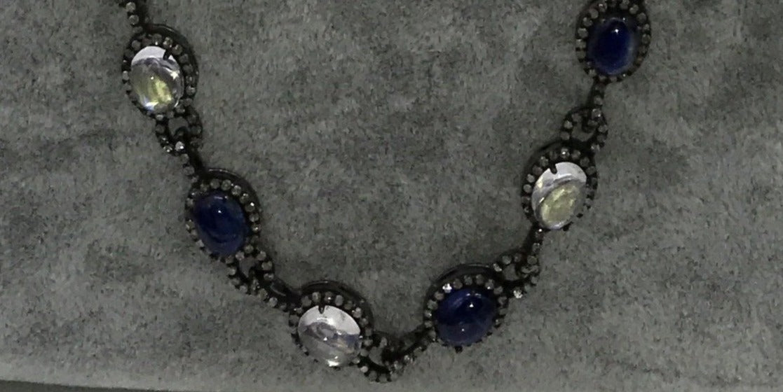 Tanzanite and Rainbow Moonstone Long Necklace with Diamonds