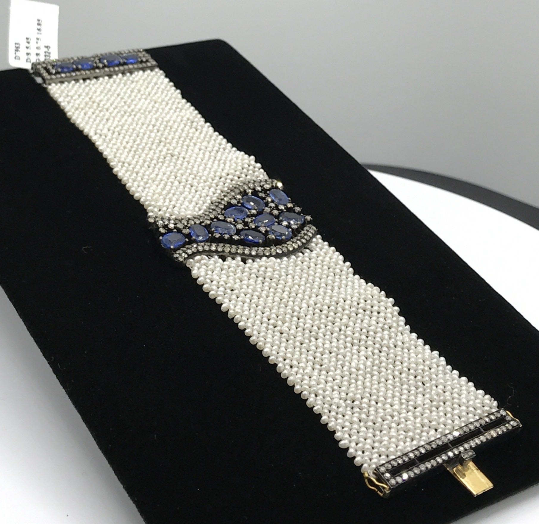 Sapphire and Diamond Designer Pearl Woven Bracelet