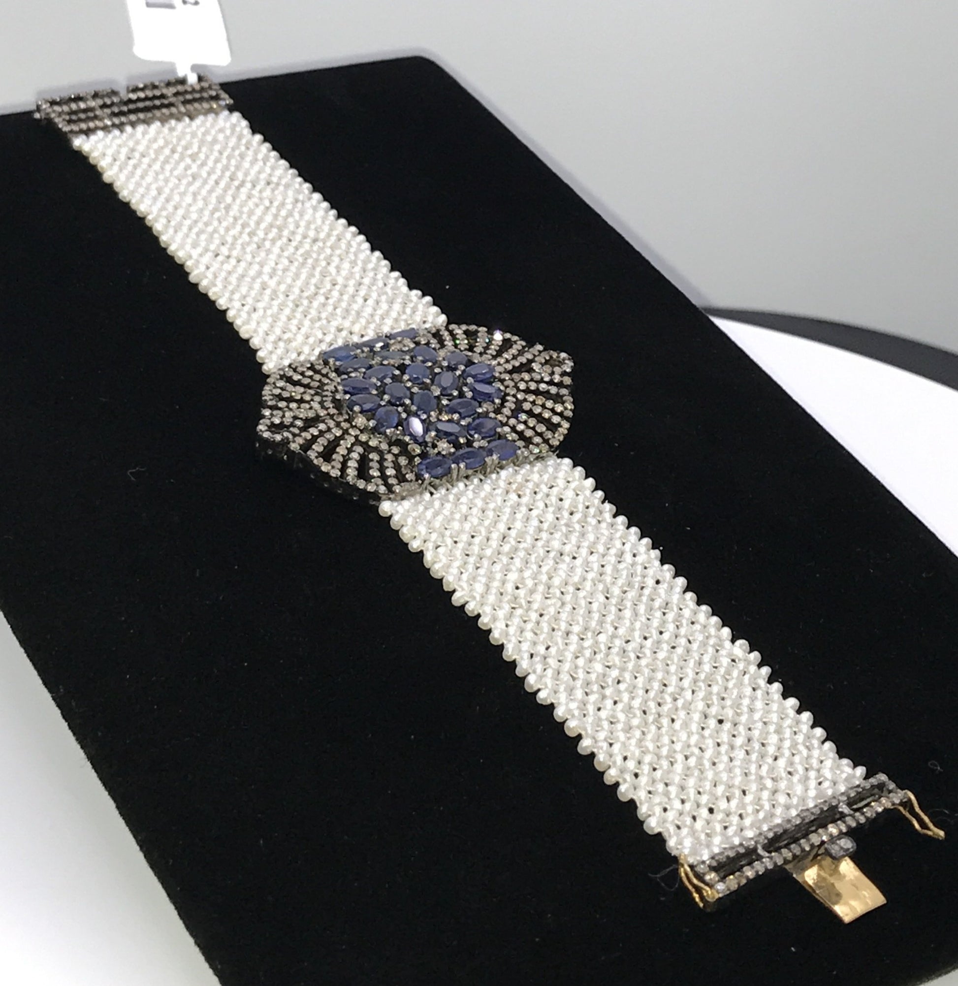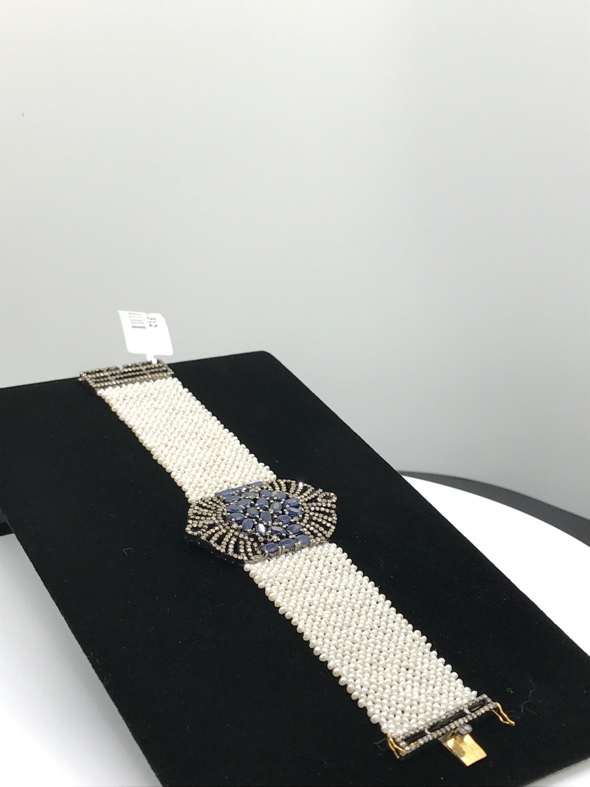 Sapphire and Diamond Designer Pearl Woven Bracelet