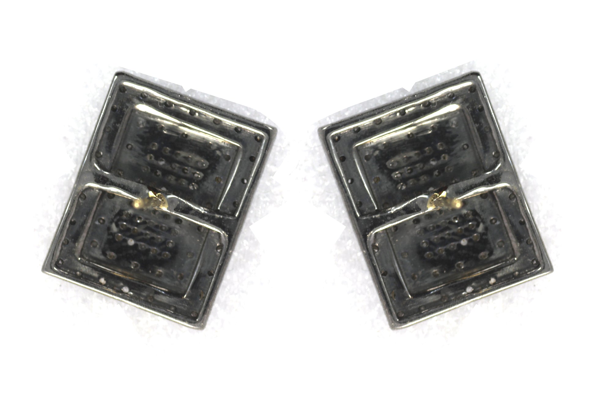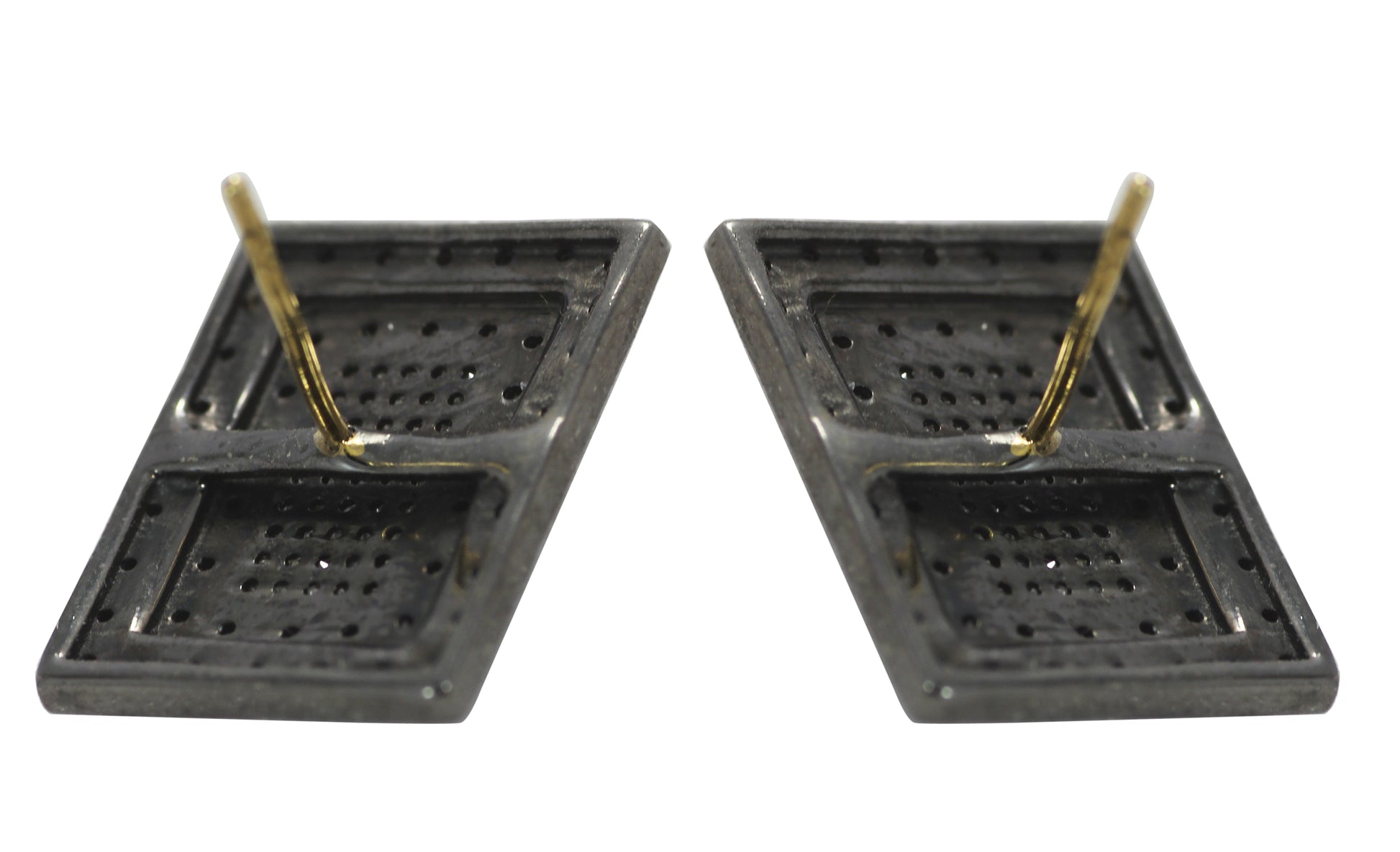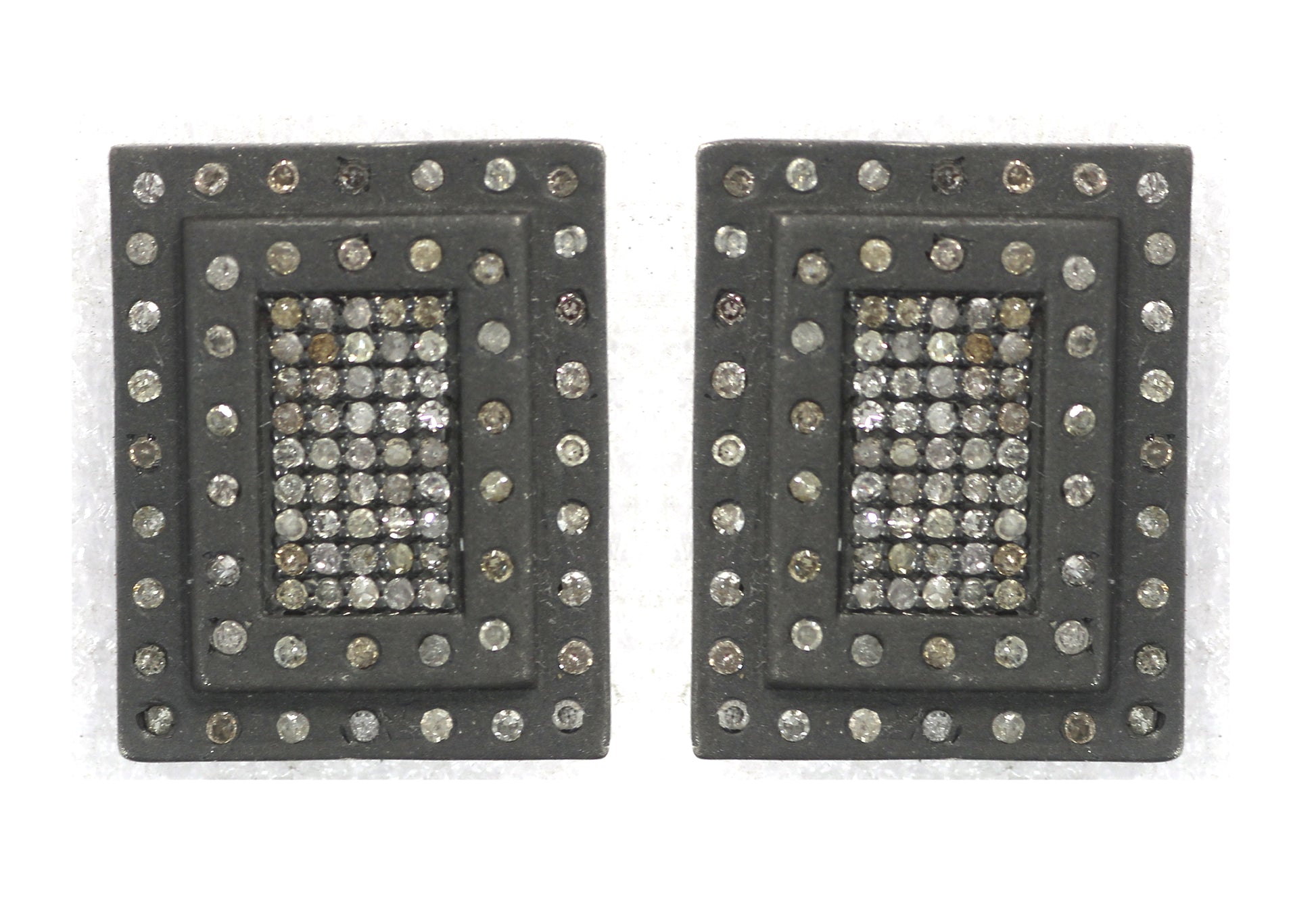 Rectangle Diamond Earring .925 Oxidized Sterling Silver Diamond Earring, Genuine handmade pave diamond Earring .