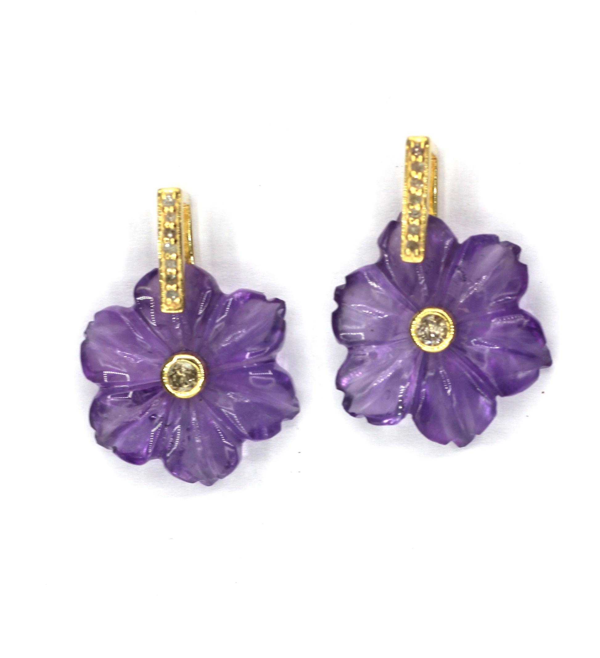 Flower Silver Pave Diamond Pendant.Available in Three Nature Stone-Labradorite,Lapis lazuli,Amethyst