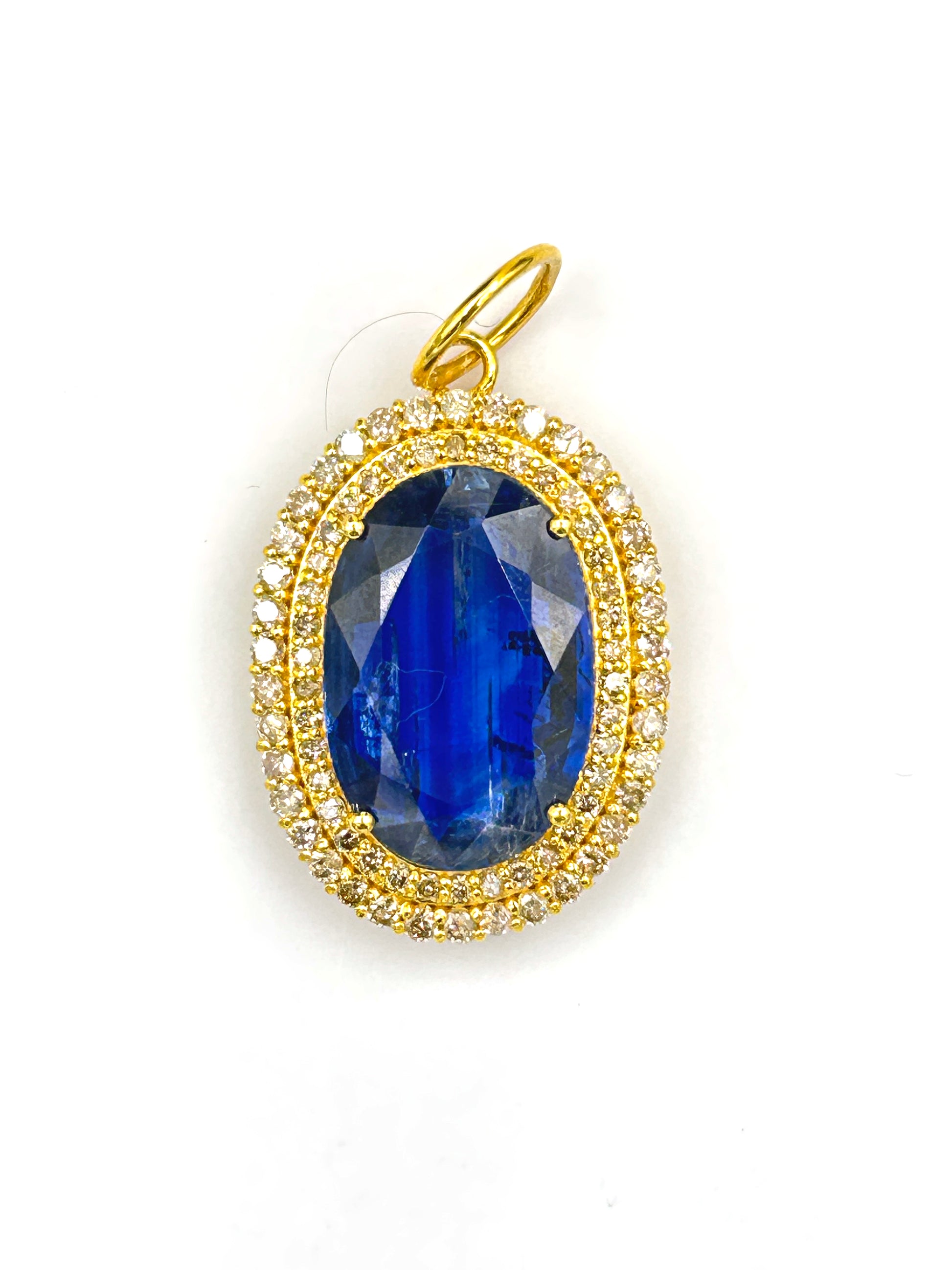 Oval 14k Solid Gold Diamond Pendants With Kyanite Stone