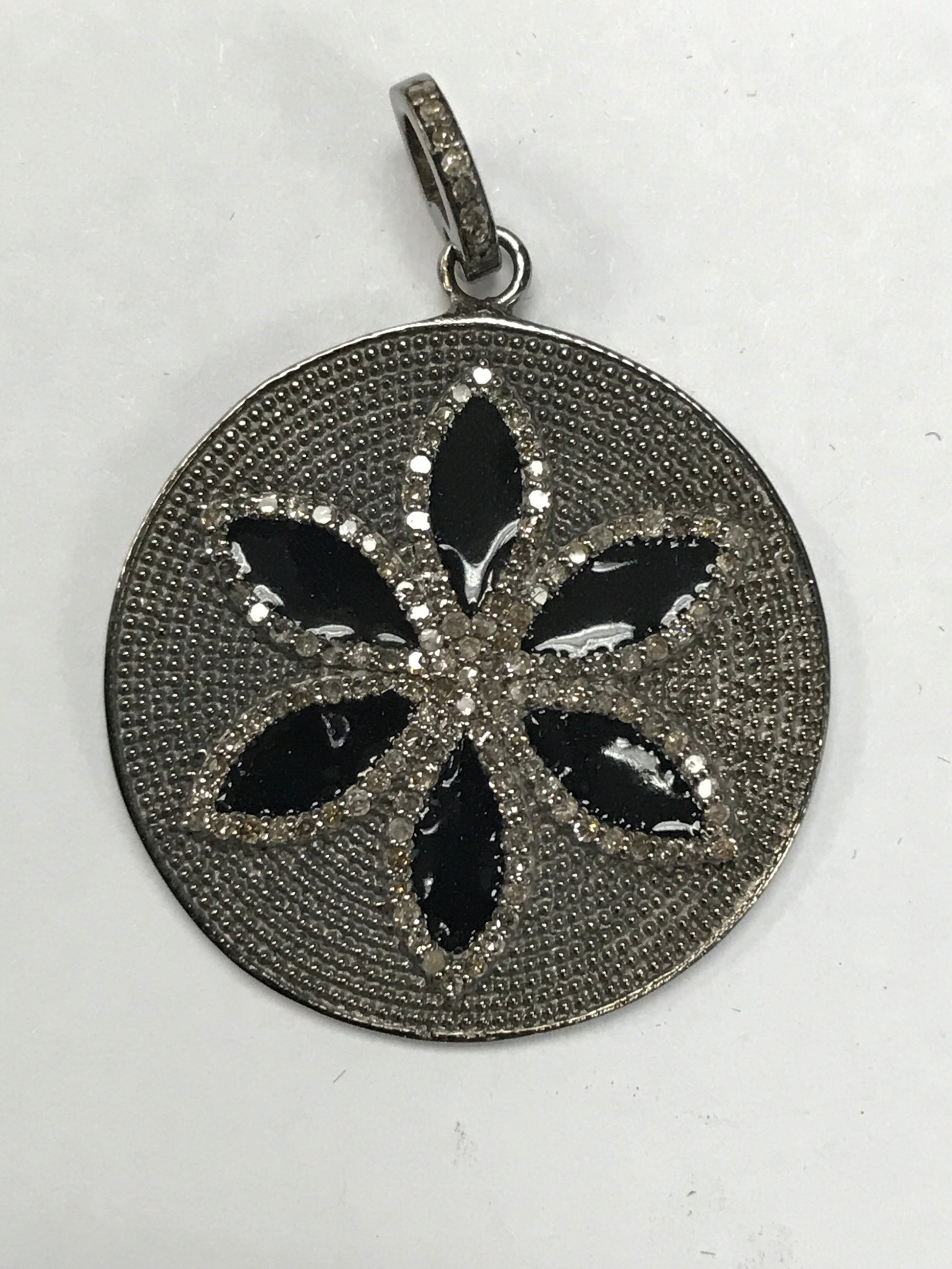 Circle (Flower Inside) Silver Diamond Charm .925 Oxidized Sterling Silver Diamond Charms, Genuine handmade pave diamond Charm Size Approx (30 MM)
