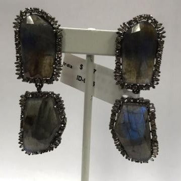 Labradorite Rosecut faceted Slice and Diamond Earring