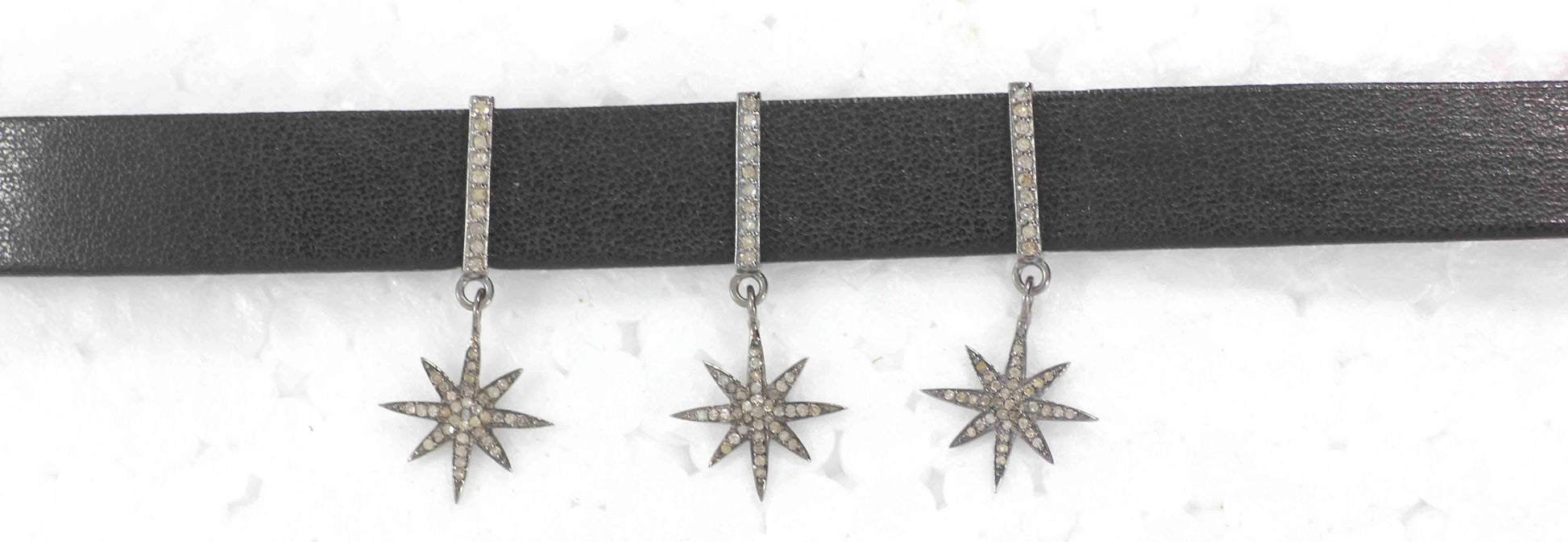 Star Leather Choker Necklaces With Pave Diamond. 925 Oxidized Sterling Silver Diamond necklaces, Genuine handmade pave diamond necklaces.