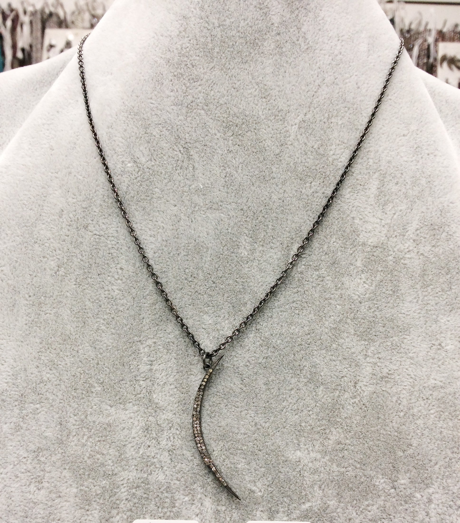 Moon Shaped Diamond Necklace .925 Oxidized Sterling Silver Diamond Necklace, Genuine handmade pave diamond Necklace Size Approx 1.56"(12 x 39 MM )