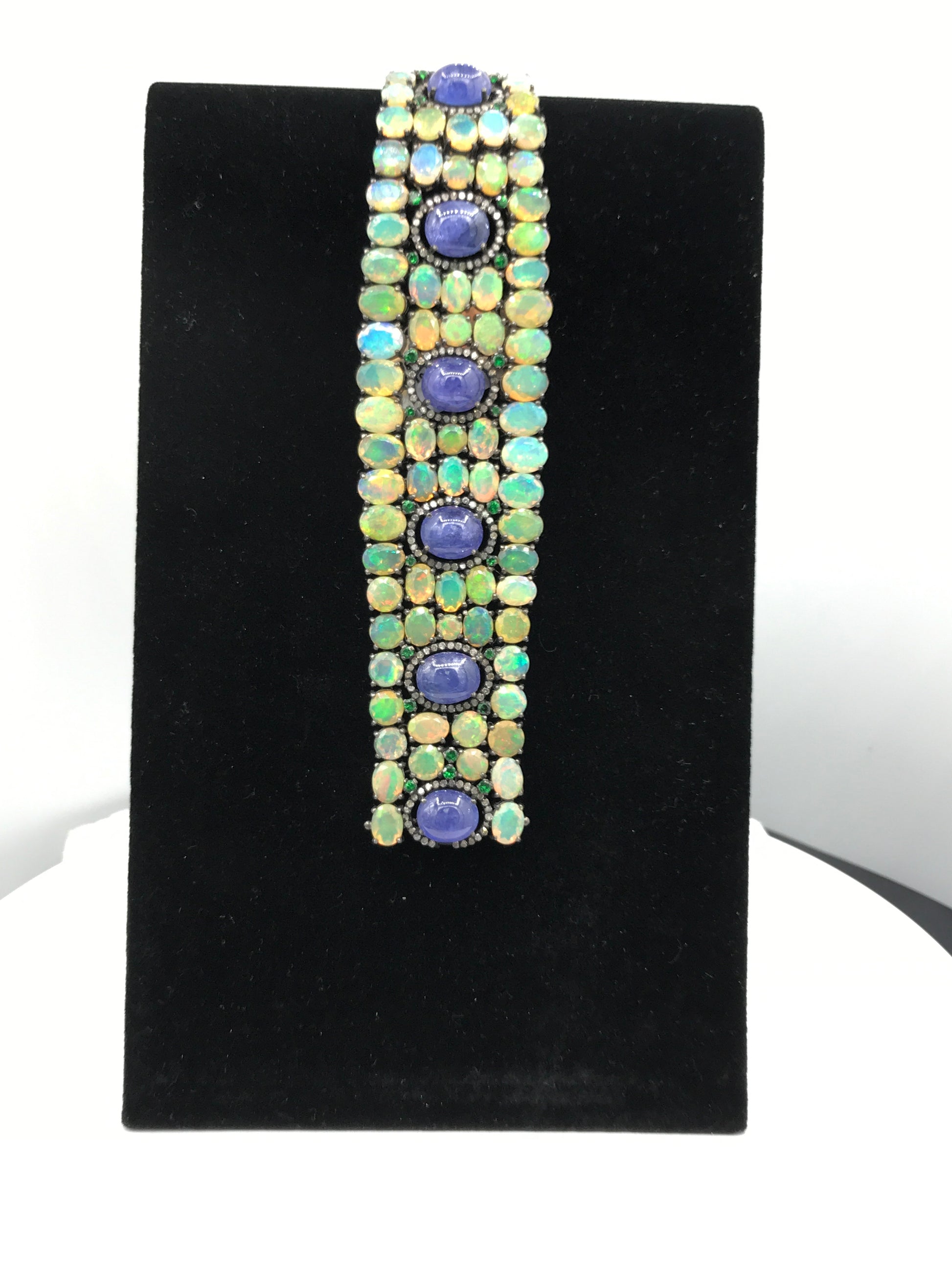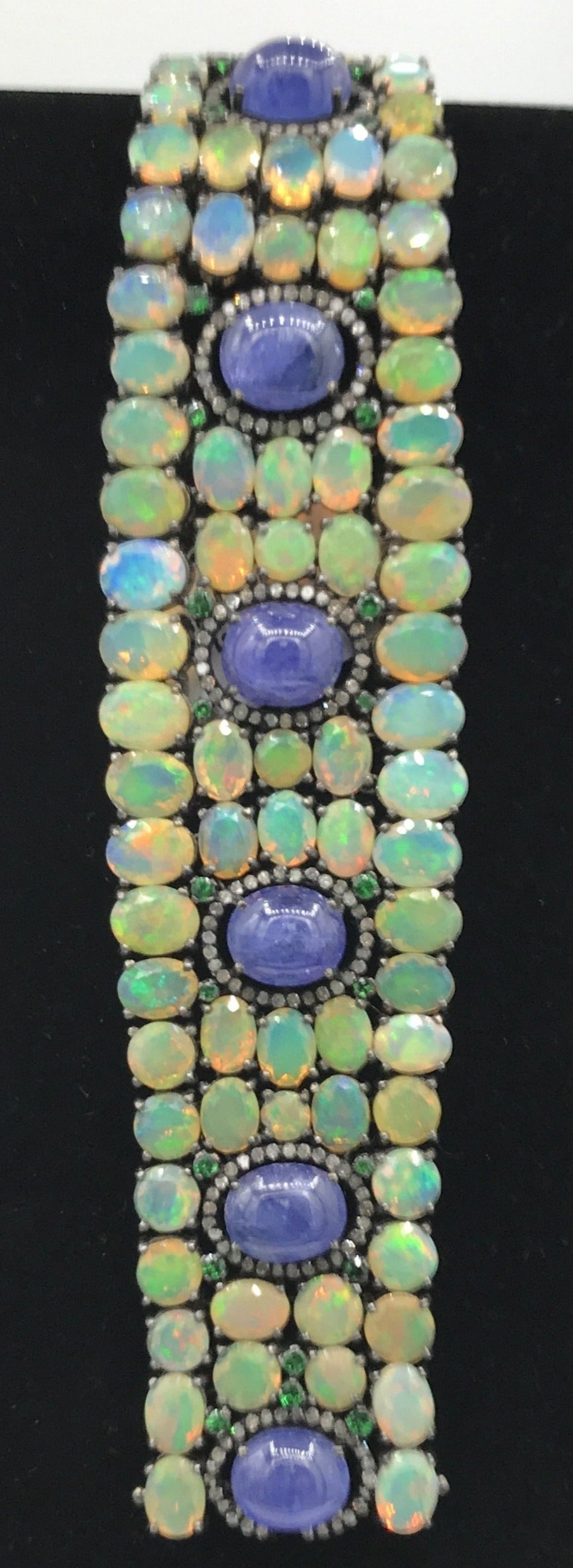 Opal and Tanzanite Designer Bracelet with Diamonds