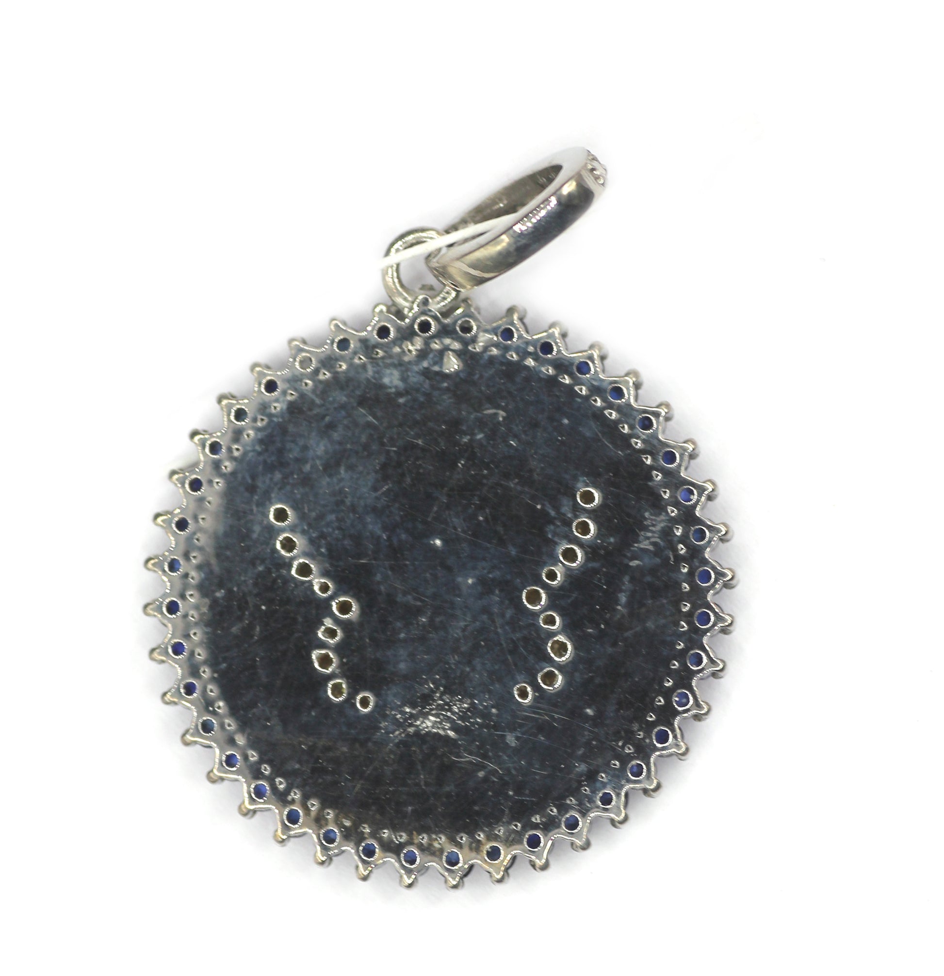 Round Disk On Butterfly pendant in 925 silver with Blue Sapphire And diamonds