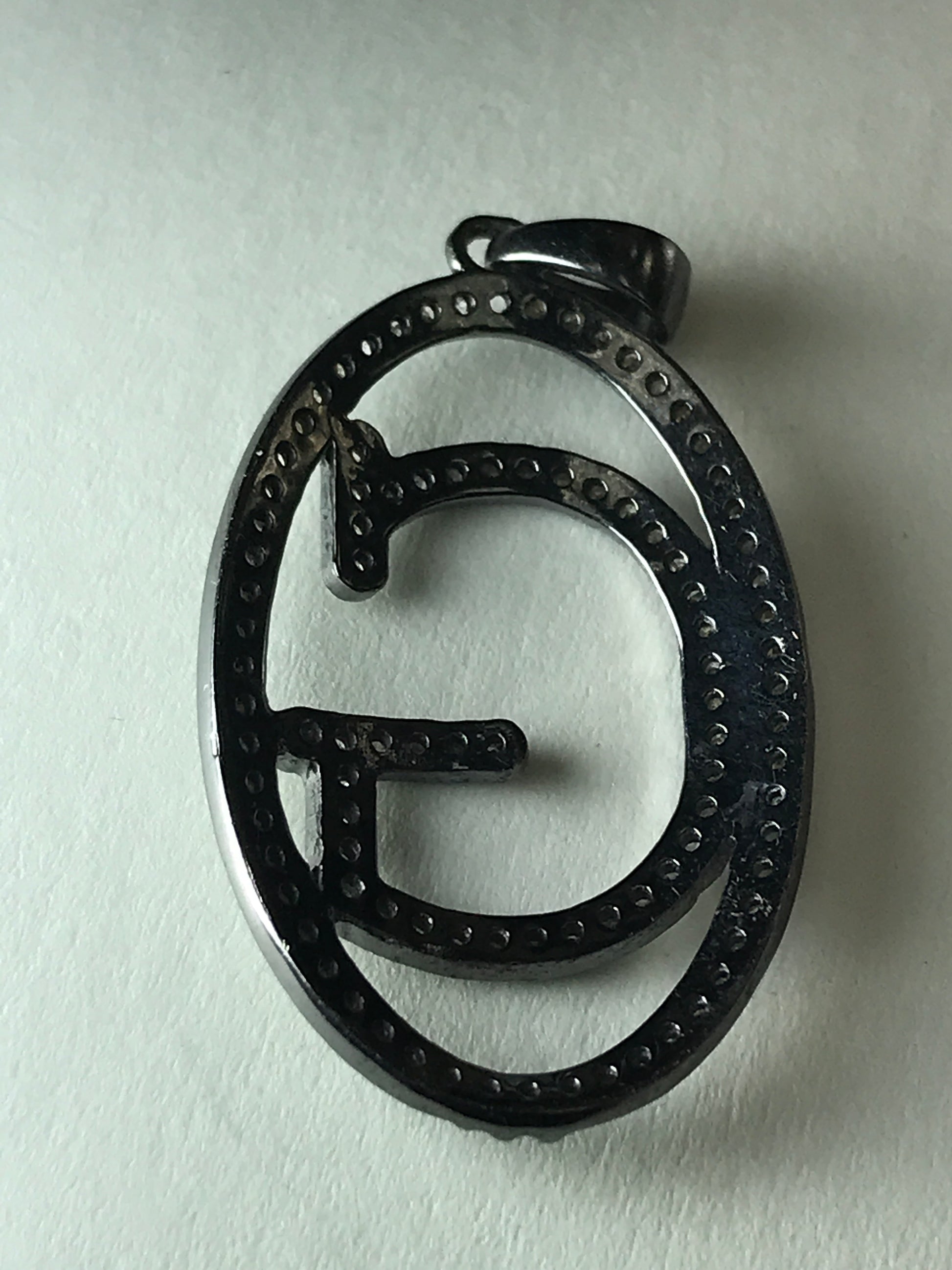 Diamond Letter G Pendant, Pave Diamond Pendant, Pave Letter G Necklace, Approx 40 x 13mm. Sterling Silver