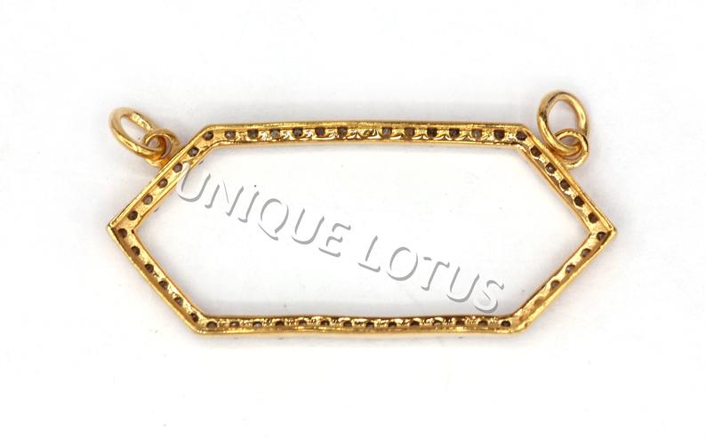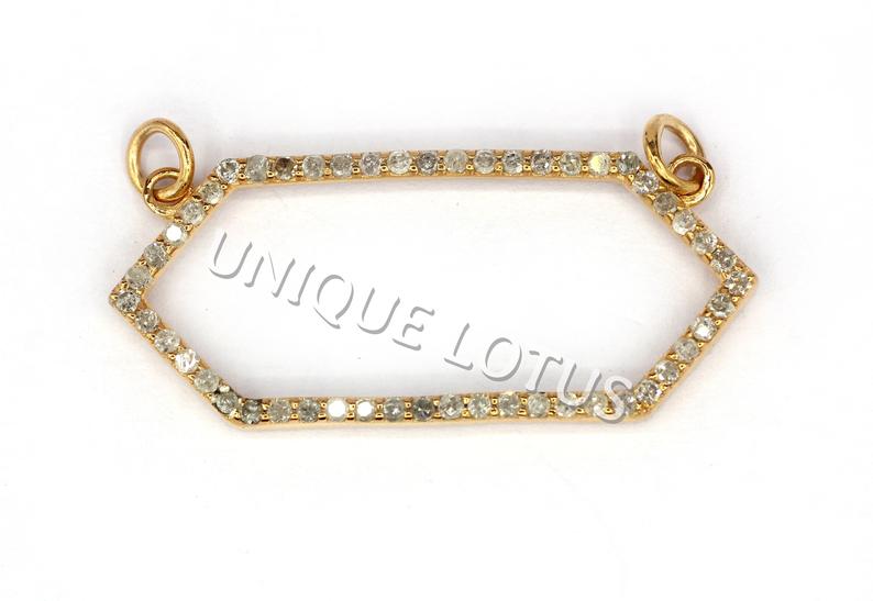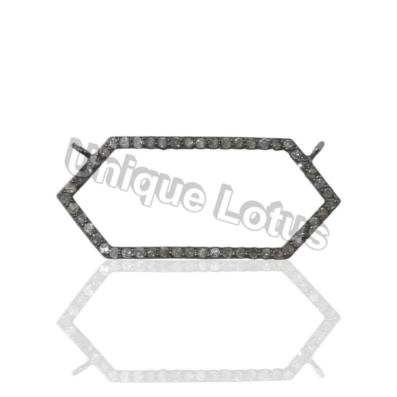 Open Geometric Diamond Charms.925 Oxidized Sterling Silver Diamond Charms, Genuine handmade pave diamond Charm Size Approx 1.40"(35 x 15 mm)