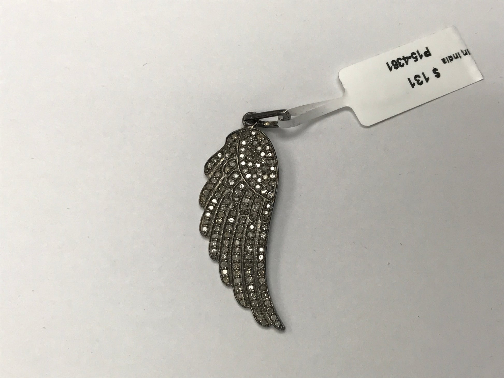 Diamond Angel Wing Diamond Pendant, Pave Diamond Pendant, Angel Wing Necklace, Approx 49 x 16 mm. Sterling Silver