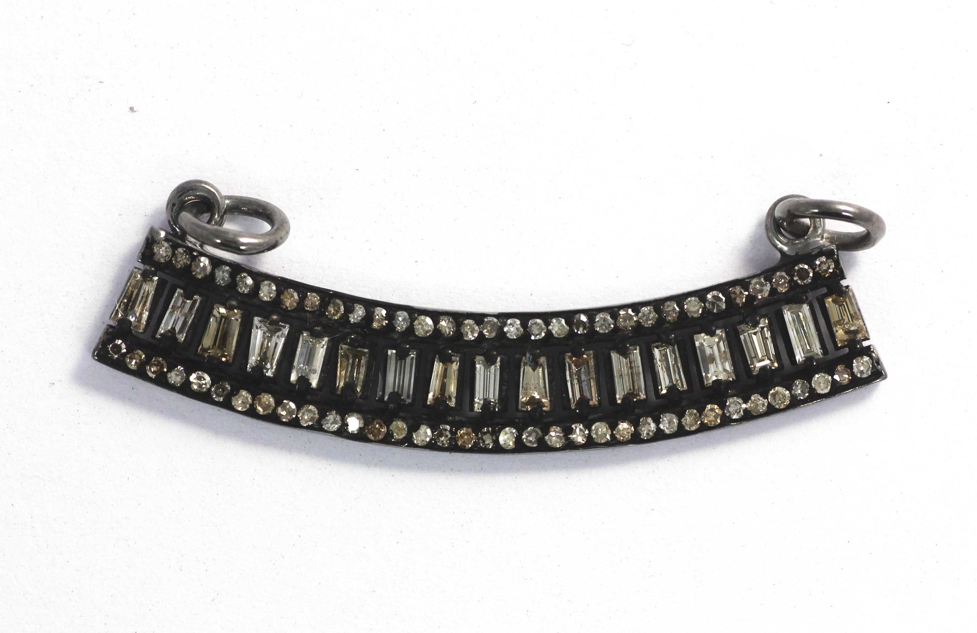 Diamond Pendant .925 Oxidized Sterling Silver Diamond Pendant, Genuine handmade pave diamond Pendant Size Approx 1.40"(35X8 MM)