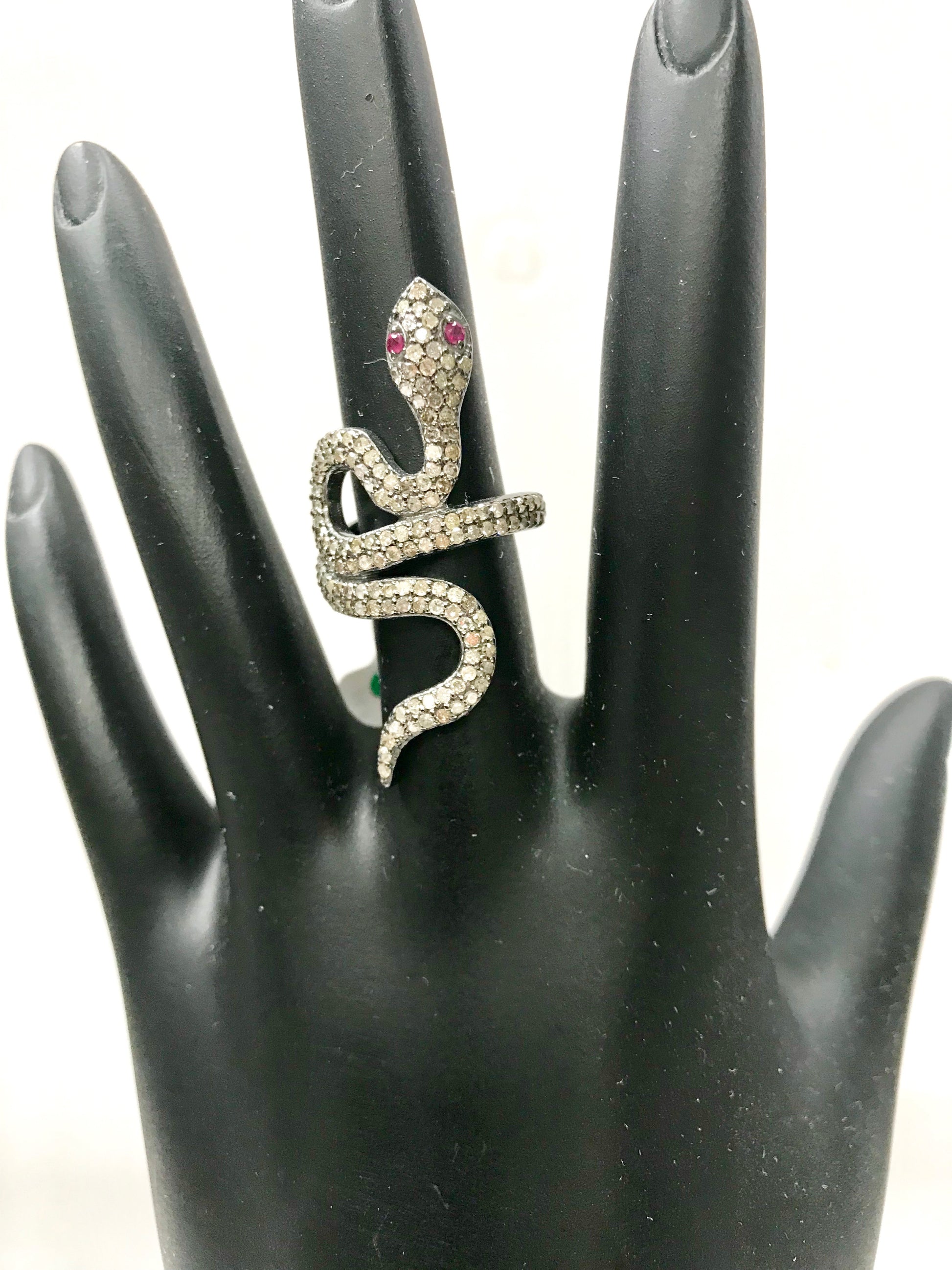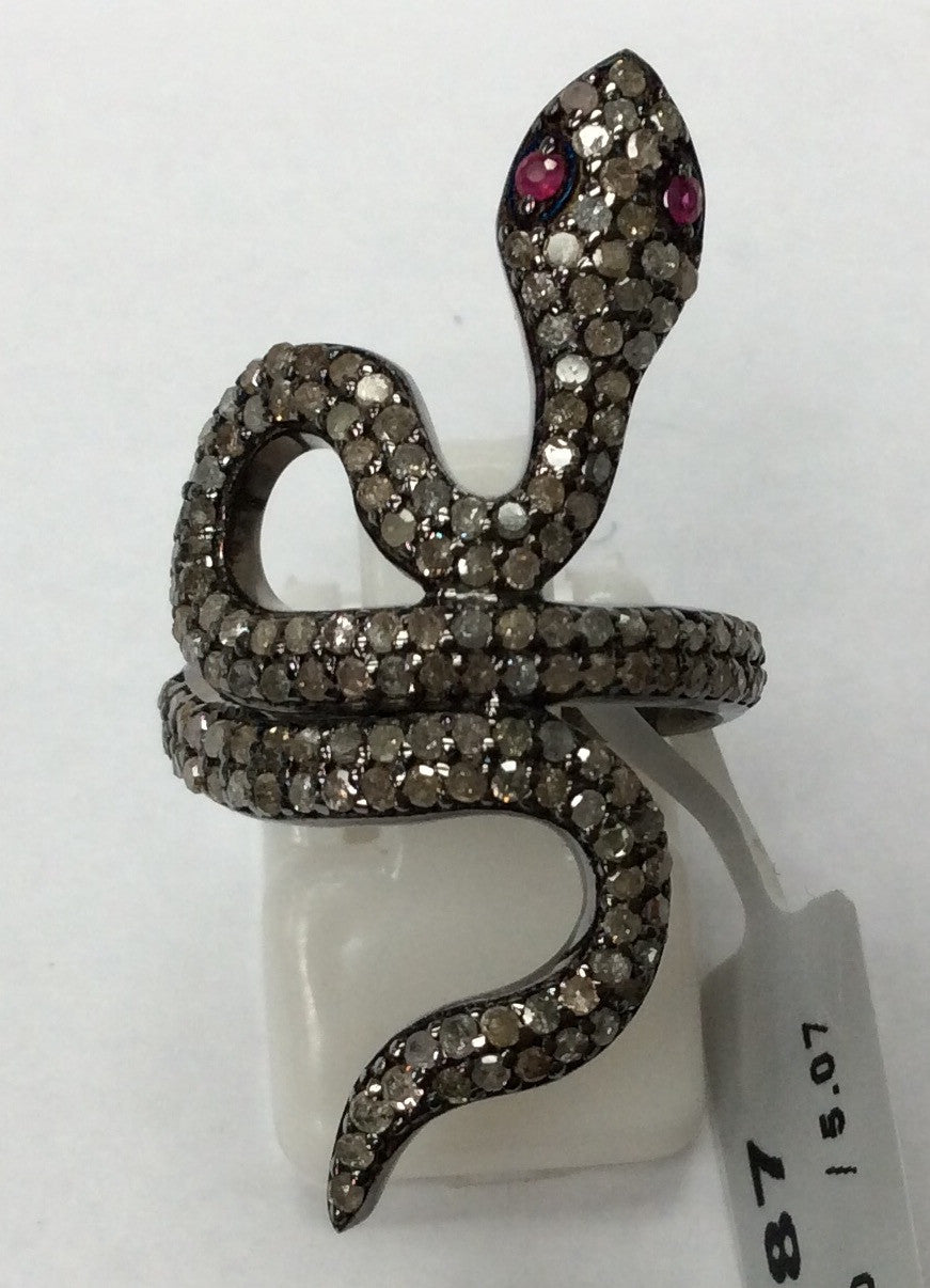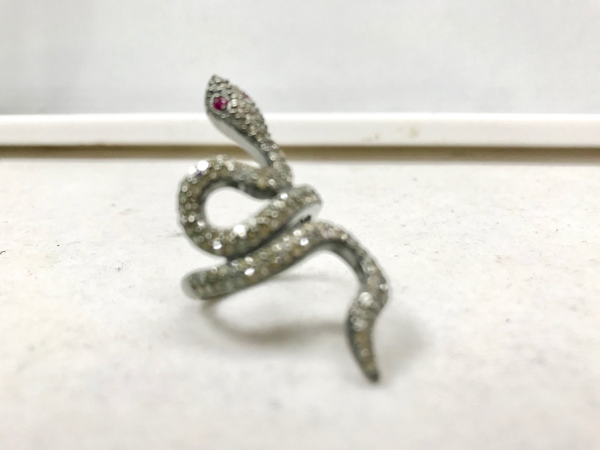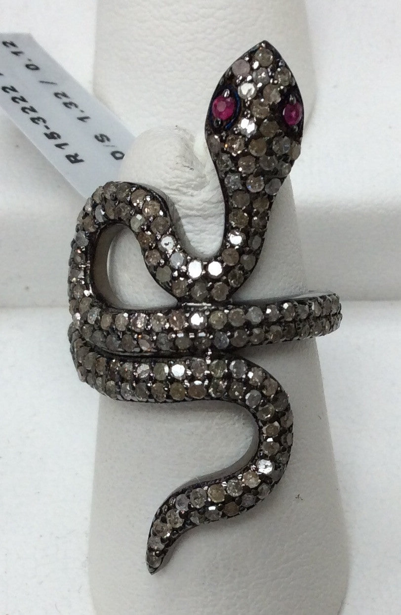 Snake Pave Diamond Ring .925 Oxidized Sterling Silver Diamond Ring, Genuine handmade pave diamond Ring Size Approx 1.52"(20 x 38 MM)