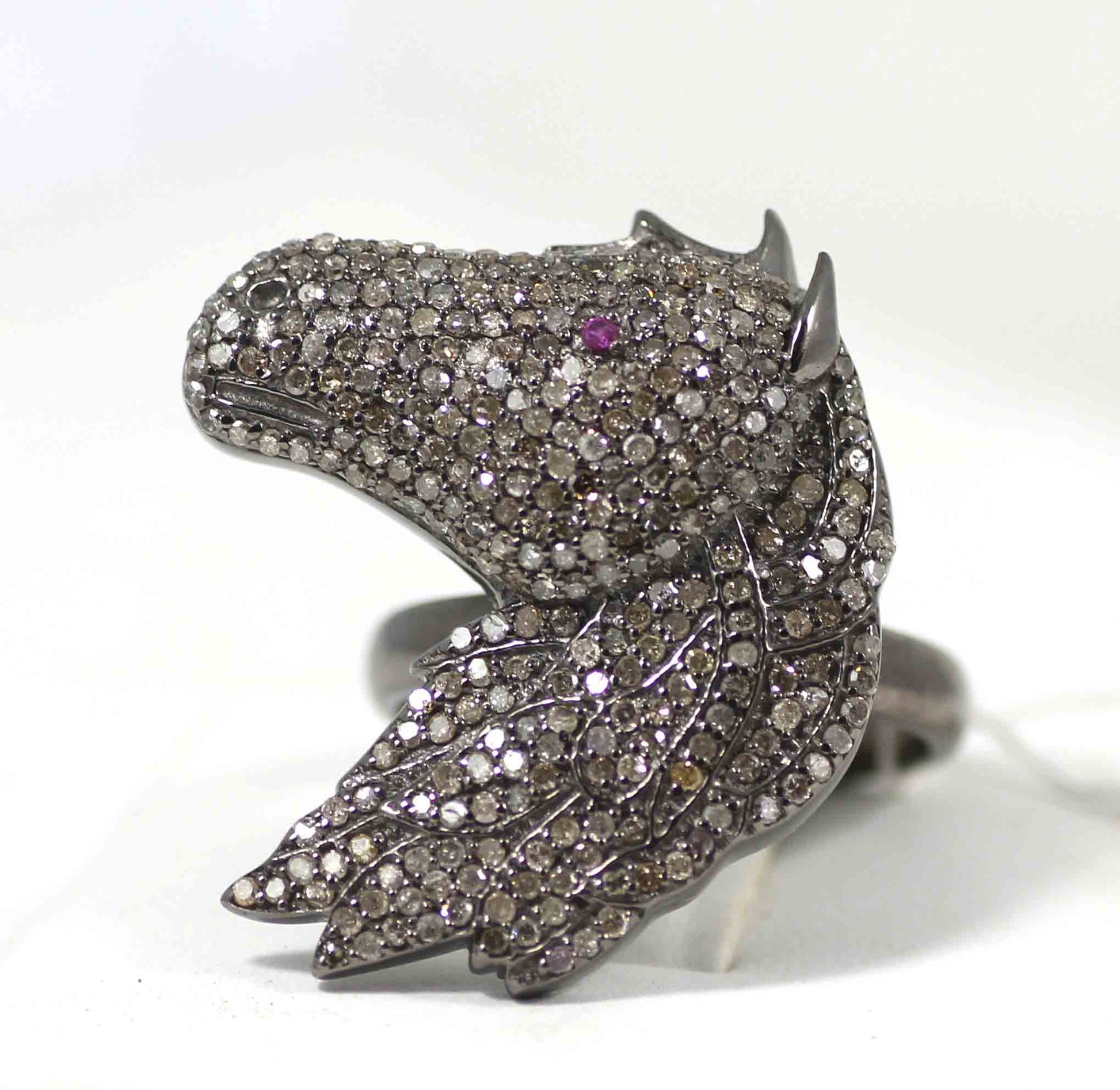 Horse Silver Pave Diamond Ring .925 Oxidized Sterling Silver Diamond Ring, Genuine handmade pave diamond Ring Size Approx 1.20"(30x26 MM)