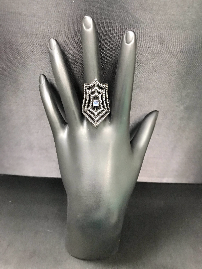 Diamond Spider Web with Moonstone Diamond Ring, Pave Diamond Ring, Pave Spider Web with Moonstone Ring, Approx 35 x 18mm