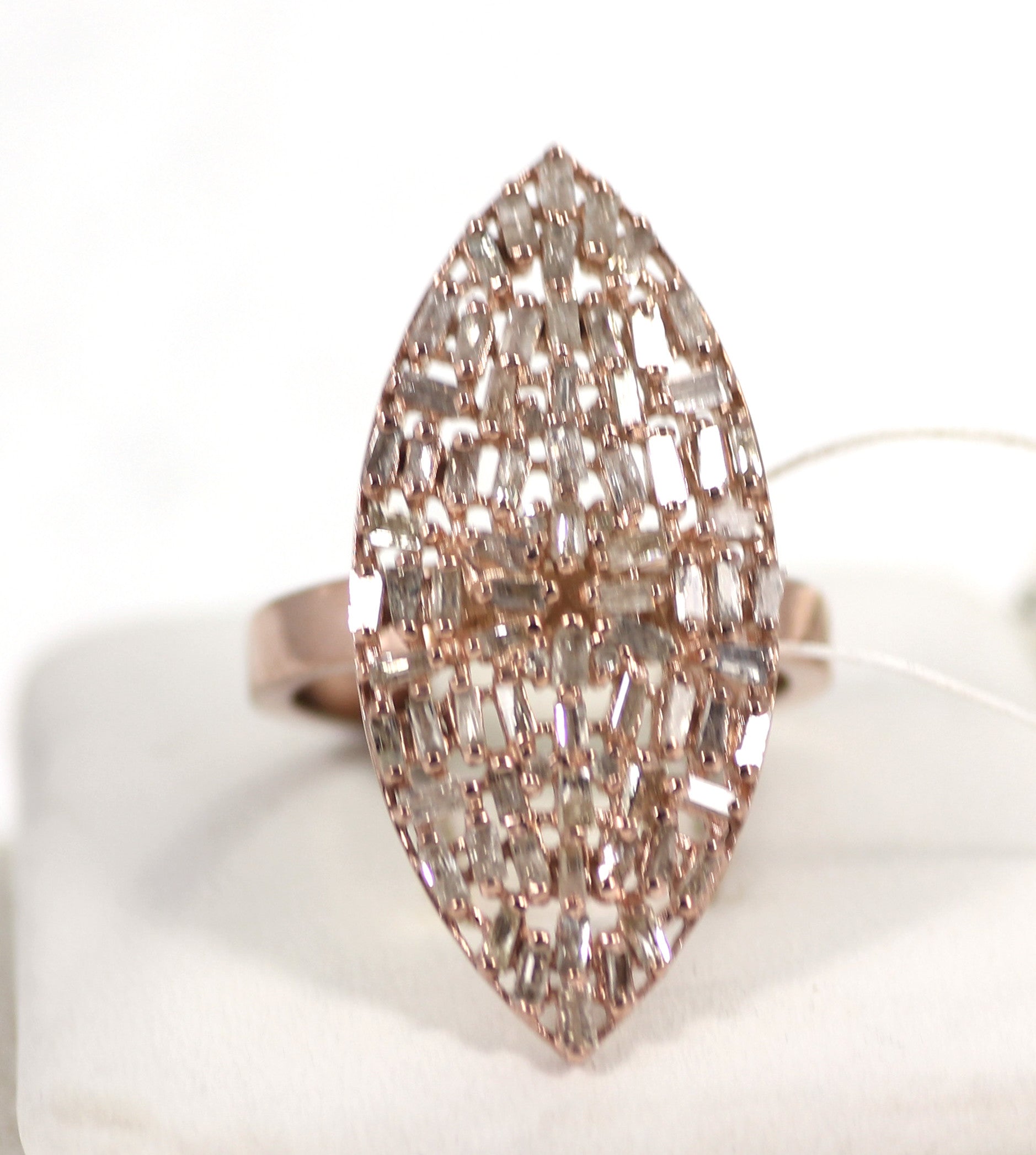 Marquise Pave Tapered Baguette Diamond Ring .925 Oxidized Sterling Silver Diamond Ring, Genuine handmade pave diamond Ring Size Approx 1.60"(40 x 15 MM)