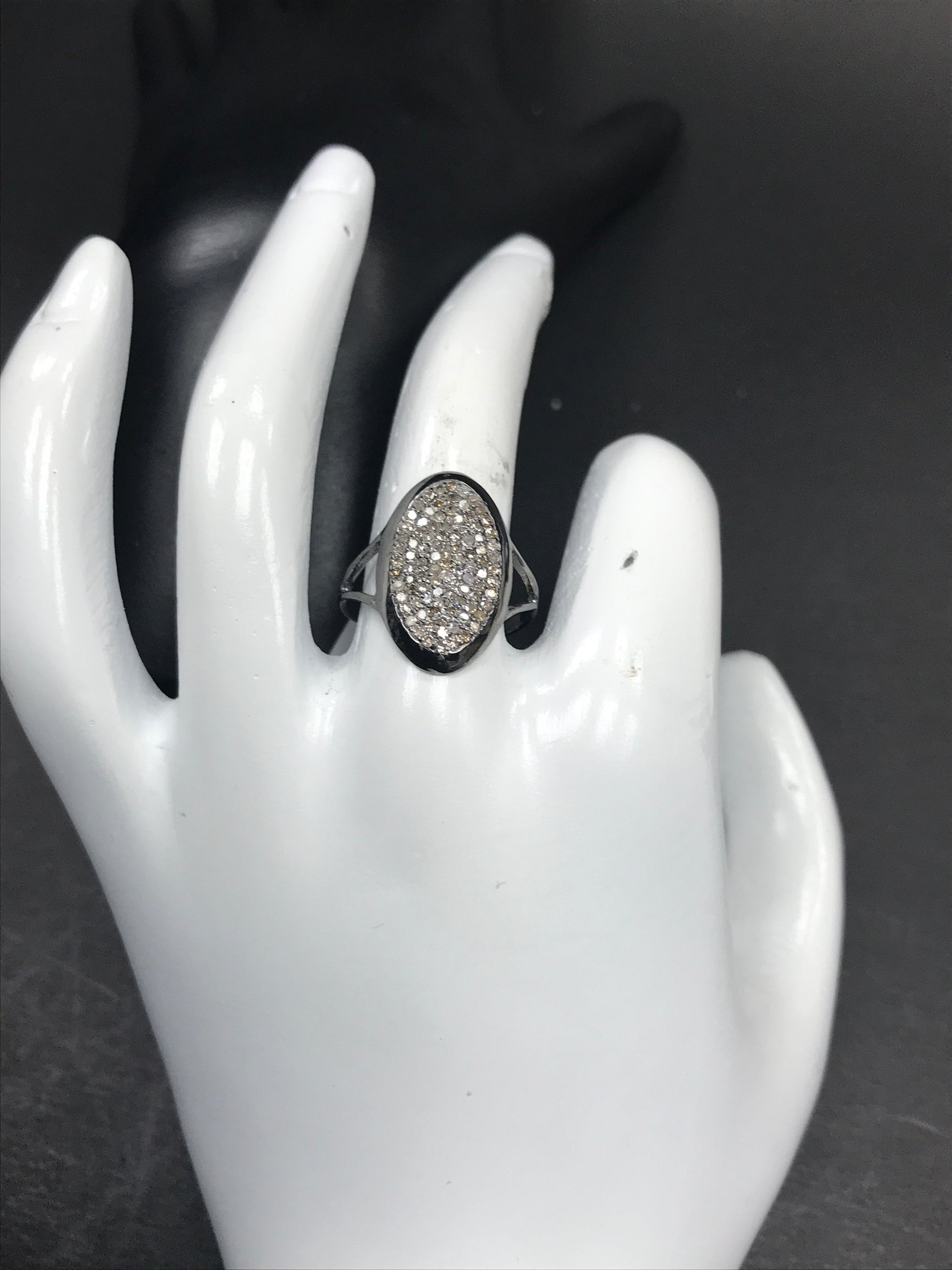 Oval Shape Silver Pave Diamond Ring .925 Oxidized Sterling Silver Diamond Ring, Genuine handmade pave diamond Ring