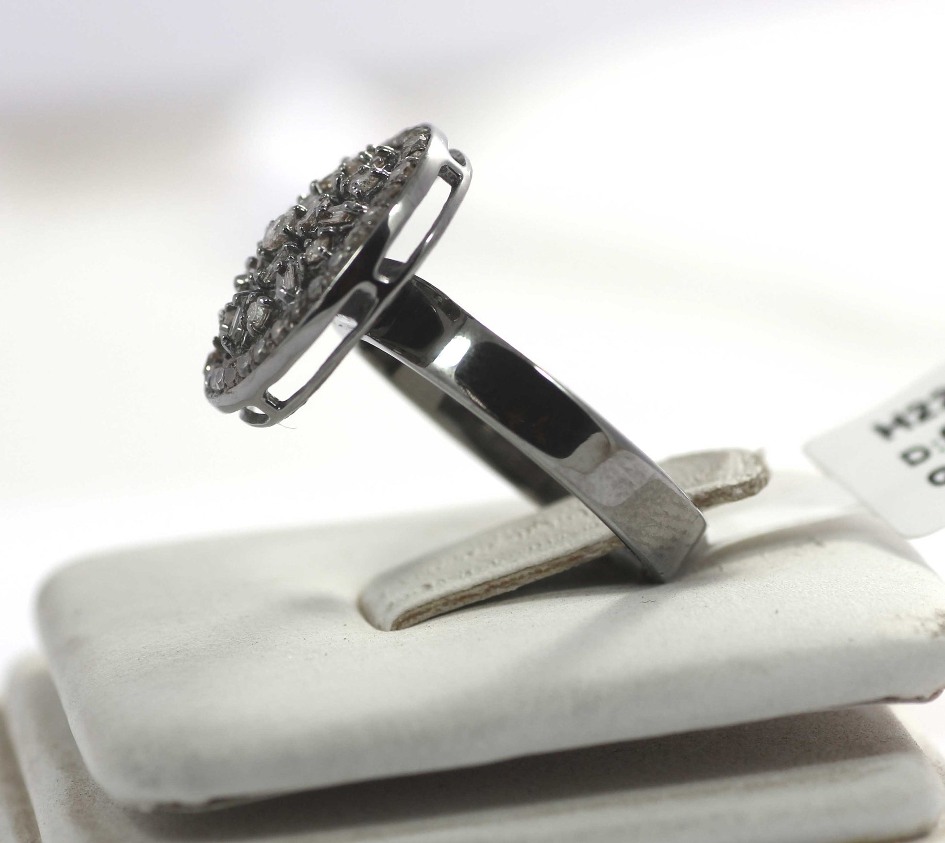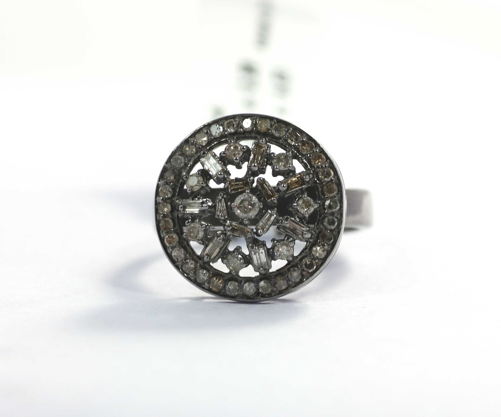 Round Shape Diamond Ring .925 Oxidized Sterling Silver Diamond Ring, Genuine handmade pave diamond Ring