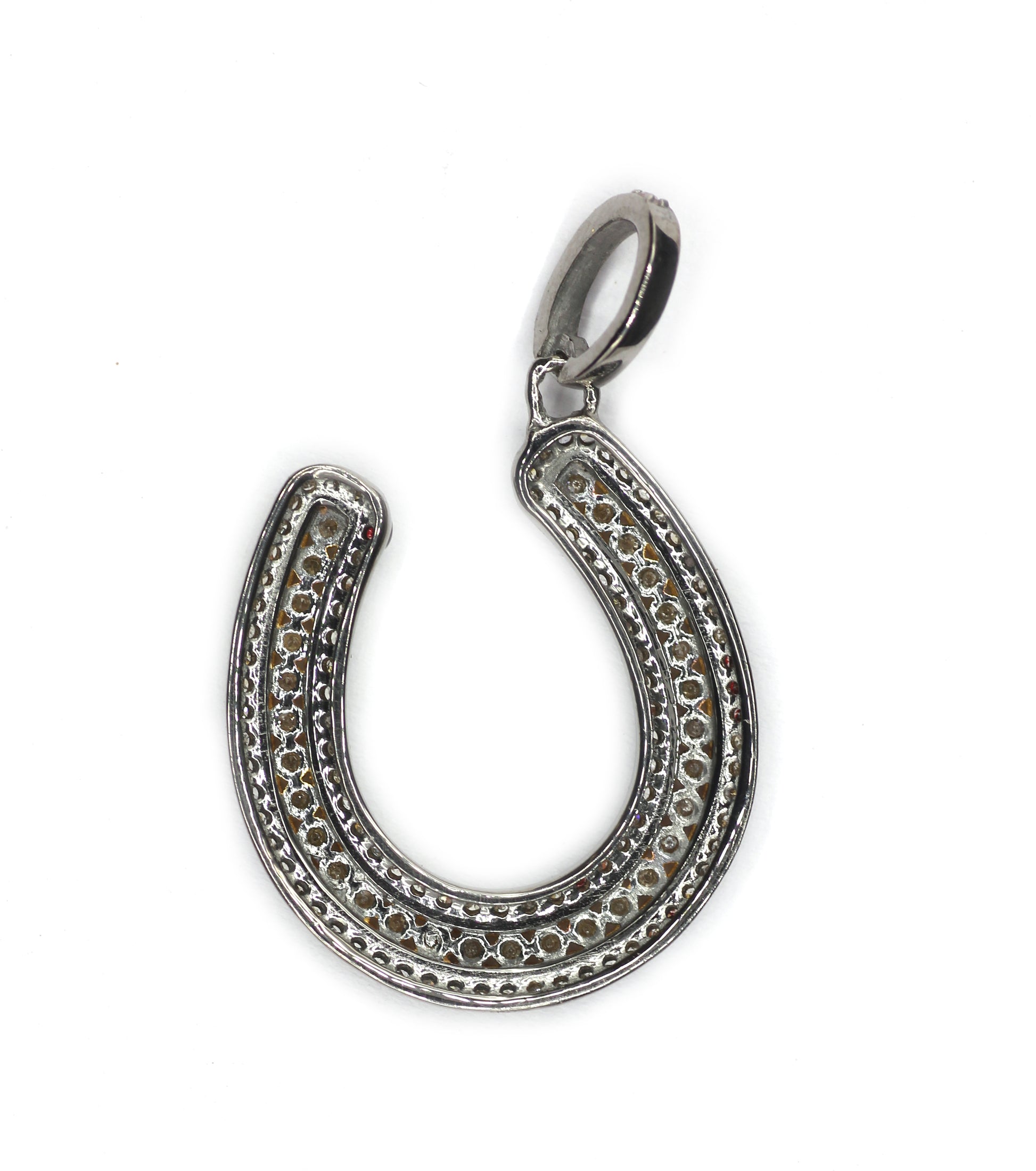 Horse Shoe shaped sterling silver pendant with Diamond Two Tone Black & Yellow Pendant