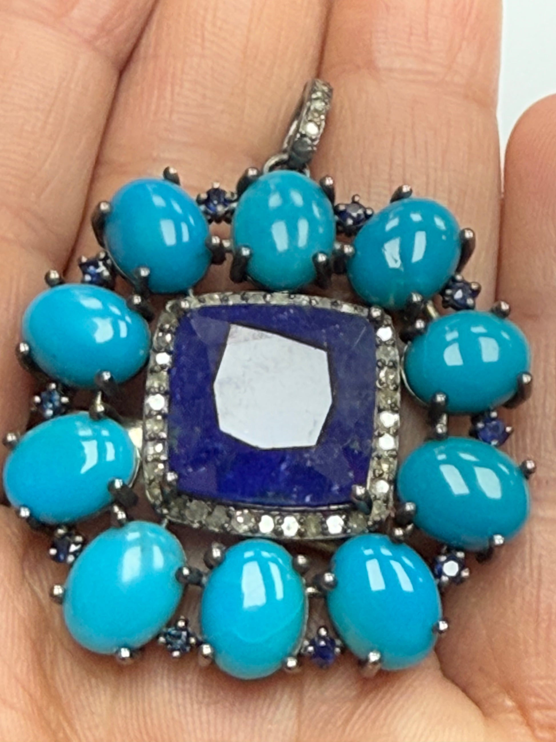 Stone Silver Pave Diamond Pendant